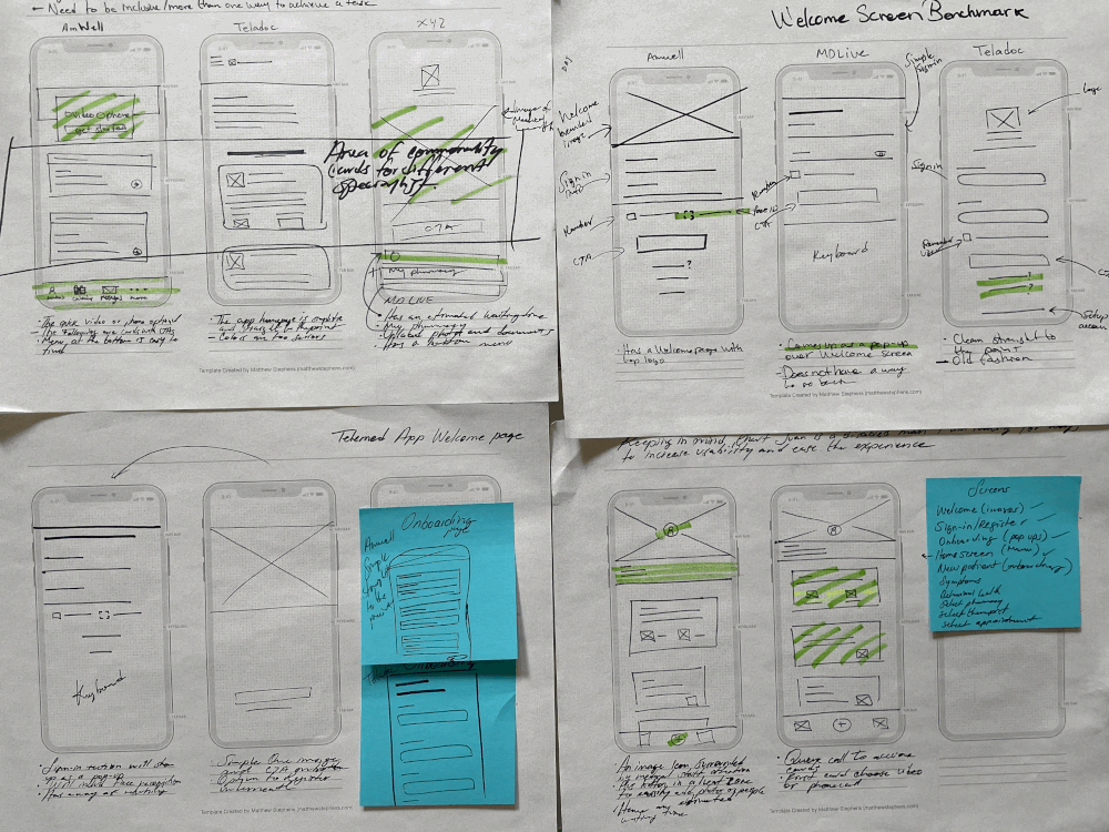 4 different dedicated Telehealth apps were benchmarked, Three of those apps are a direct and one an indirect competitor. During this benchmark I found that the UI in some of them had unnecessary steps that frustrated the user, one of this pain points included not having an easy way to return and/or having to confirm on a simple next step advancement.